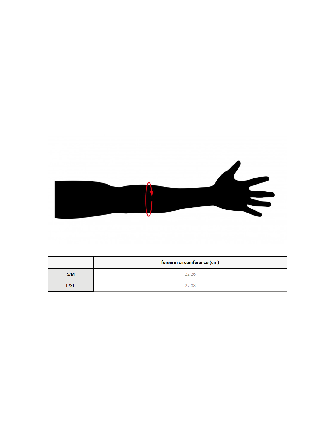 Strecken Sie Ihren Arm aus, messen Sie den Umfang Ihres Unterarms an der breitesten Stelle und bestimmen Sie anhand der ermittelten Größe Ihre Größe.