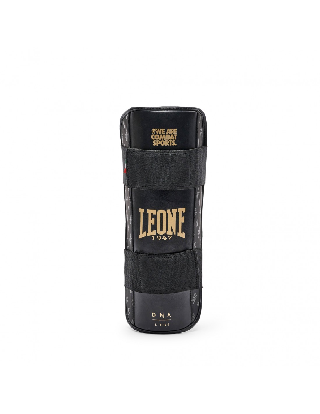 Leone1947 La nuova linea di prodotti DNA incarna l'anima del marchio ed è caratterizzata da dettagli dorati, elementi lucidi e opachi perfettamente coordinati. Il parastinchi è in nero/oro e si abbina perfettamente al parapiede DNA.