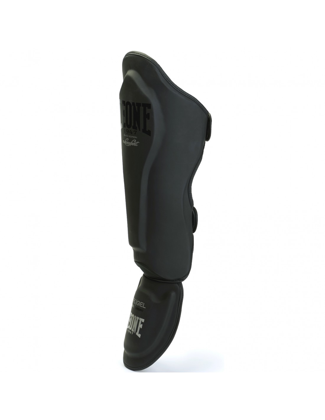 La Black Edition del Leone 1947 è completata dai parastinchi realizzati in nero opaco con dettagli a contrasto in nero lucido e argento. Il disegno anatomico di questa protezione è stato studiato per avvolgere i muscoli della gamba e della tibia, prestando particolare attenzione alla zona della tibia e del collo del piede. La protezione aggiuntiva in gel garantisce un'eccellente assorbenza dei punzoni. Inoltre, questo nuovo parastinco presenta una fodera interna ipoallergenica e traspirante, chiusure in velcro e tessuto elastico nella parte inferiore del piede per garantire stabilità e comfort.